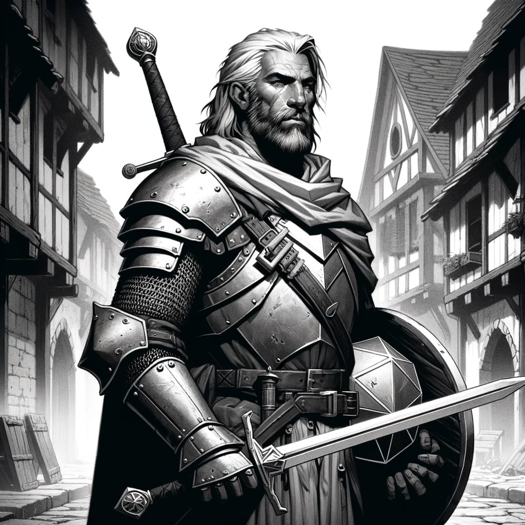 Harbuck is rarely seen without his well-maintained armor, which, while showing signs of wear, serves as a testament to his experience and readiness to defend his charge. His weapon of choice is a longsword, bestowed upon him in his early days as a paladin, and a sturdy shield emblazoned with the symbol of his deity, signifying his commitment to justice and protection.