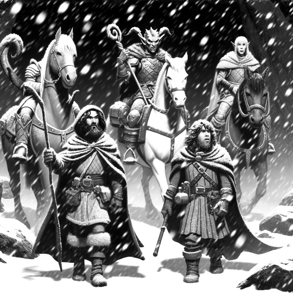 Driven by curiosity and concern, the party ventured back toward the storm to investigate the shepherd’s tales, only to be repelled by the severe weather. They made the prudent decision to seek shelter, building a fire to fend off the cold that had seeped into their bones.